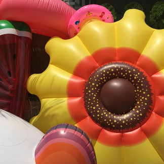 On the day of the event we arrived at the venue 5 hours before the start time to set up - we had quite a bit to do. We blew up all the amazing floatie toys we hire, we checked on the progression of our food order for the night, we arranged the tables and made the table centers.